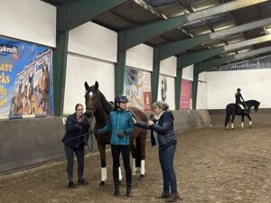Als ich am 16.10.2025 zur PM Veranstaltung in Bremen auf dem Schimmelhof (Für einen Einblick für die Veranstaltung klick auf den Link und schaue ein kurzes Video) war, hatte ich in der Demo ganz verschiedene Pferd- Reiter Paare zu analysieren. Von einer jungen Dressurreiterin auf ihrem Pony mit knapp 1,40m, über eine erfahrene Reiterin mit ihrem Jungpferd bis hin zu zwei großen Voltigierpferden mit einem Stockmaß von mindestens 1,80 m und ihren Reitbeteiligungen. Zum Ausgleich des geforderten Linksgalopps auf dem Zirkel sorgen diese Reiter im Schimmelhof bei jedem Voltipferd für Abwechslung im Training.